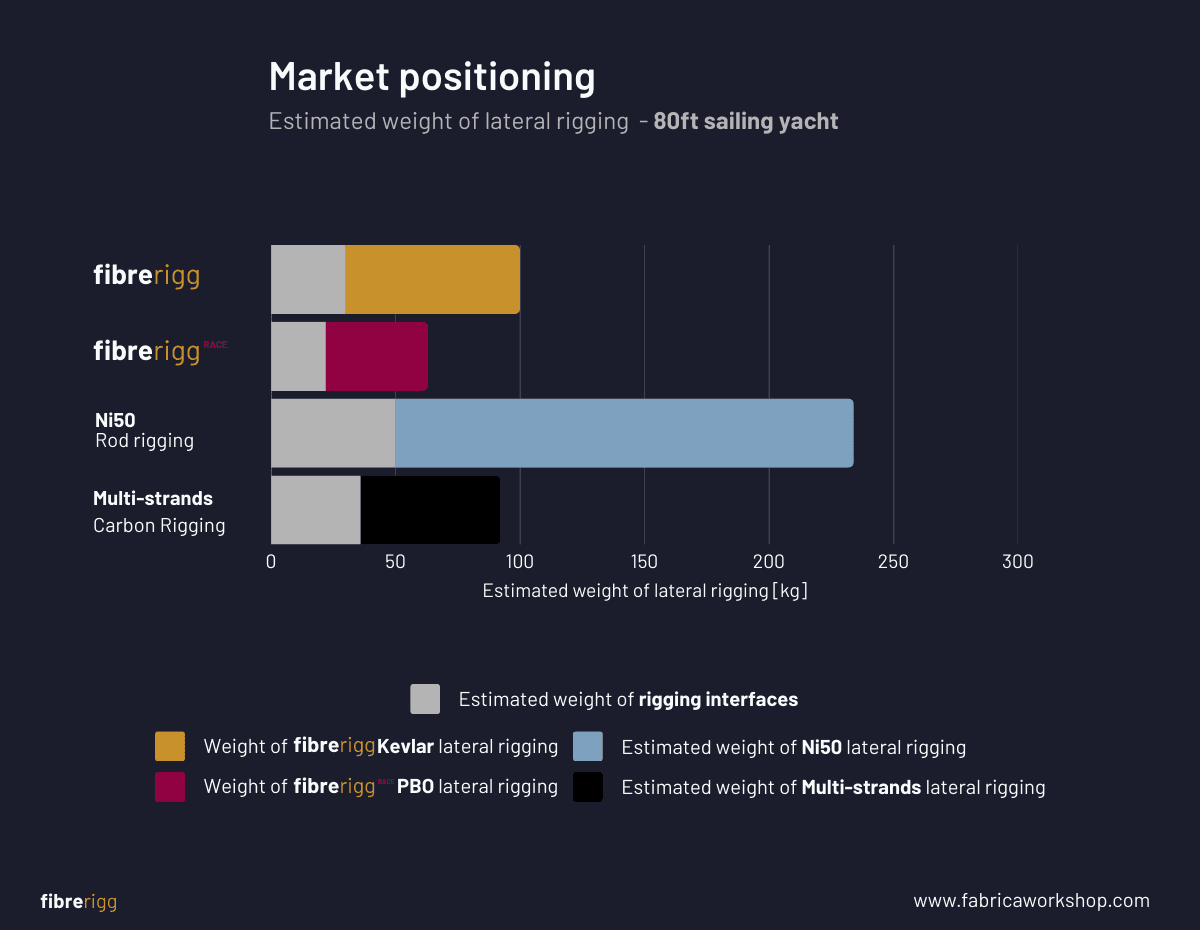 Thanks to its exceptional strength-to-weight ratio, fibrerigg is lighter and stronger than traditional Ni50 rod rigging.