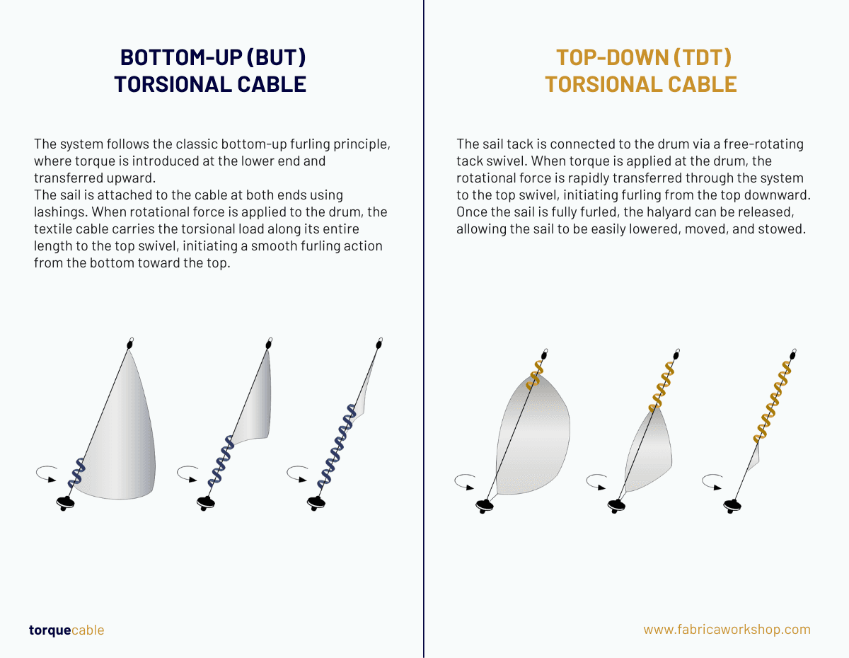 Flexible furling cables made from advanced synthetic fibres with unique torsional properties, delivering lightweight and reliable furling solutions for yachts of all sizes.